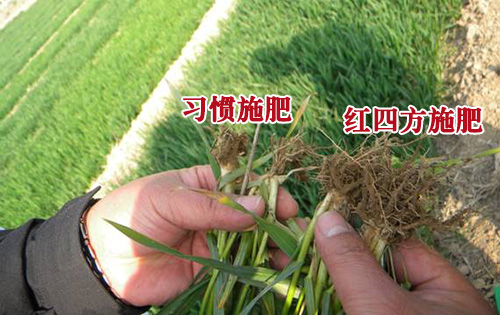 4個多月過去后,張大哥地里的小麥,長勢平穩,麥苗粗壯,鄰居家用其他復合肥的小麥,長勢明顯要差,外觀顯得肥效后勁不足。對兩塊地的小麥做根系對比,剛挖出來就發現用小麥加鋅肥的根帶的土就比用普通復合肥的土多,經過去土后,很明顯地看到用小麥加鋅肥的小麥的根系比較發達,毛細根多,主根系長,分蘗也多。